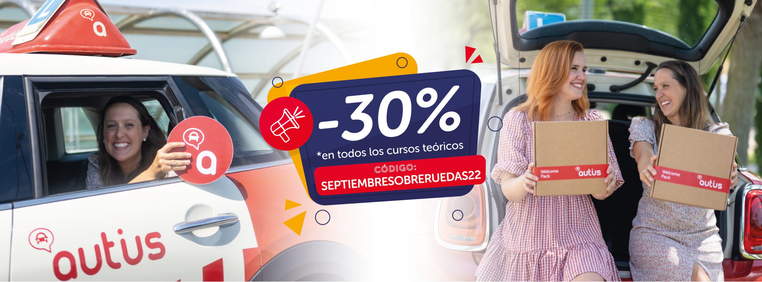 Y es que durante todo el mes tienes un ¡30% de descuento en el curso teórico que tú elijas! Puedes pasarte por la autoescuela o comprar tu curso o pack de teórica + práctica en la web con el código SEPTIEMBRESOBRERUEDAS22 y se te aplicará automáticamente el descuento